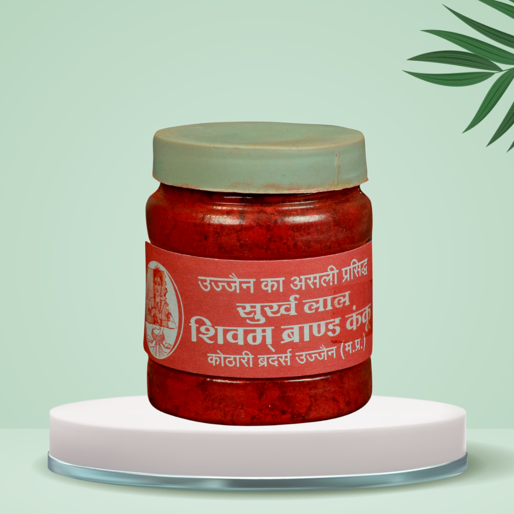 Kumkum is a red powder made from turmeric, used in Hindu culture for religious and cultural purposes. It has a bright red color and is applied on the forehead as tilak or sindoor during auspicious occasions. It is considered a symbol of good fortune and purity. In some parts of India, it is also used to adorn idols and deities during worship. The significance of kumkum varies from region to region but it is an essential part of Hindu rituals and customs
